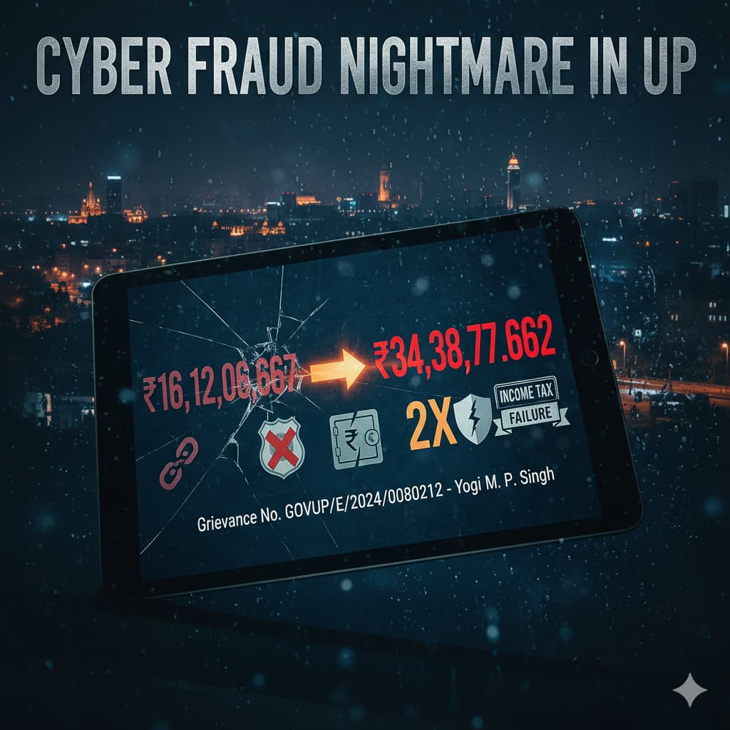 The shocking details emerging from Grievance No. GOVUP/E/2024/0080212 submitted by Yogi M. P. Singh of Mirzapur, Uttar Pradesh, paint a stark and alarming picture of a colossal cyber fraud case. This cyber fraud nightmare in UP has not only gone unpunished for over a year, but it has more than doubled in scale. This isn’t just a story of a single victim. Instead, it’s a profound critique of the systemic failures across multiple government departments, from local police to the central Income Tax (I.T.) Department.